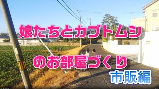 お盆休みを利用して田舎の広大な山でカブトムシを捕まえたので、娘がお家を造りたいとの事で一緒に造りました。