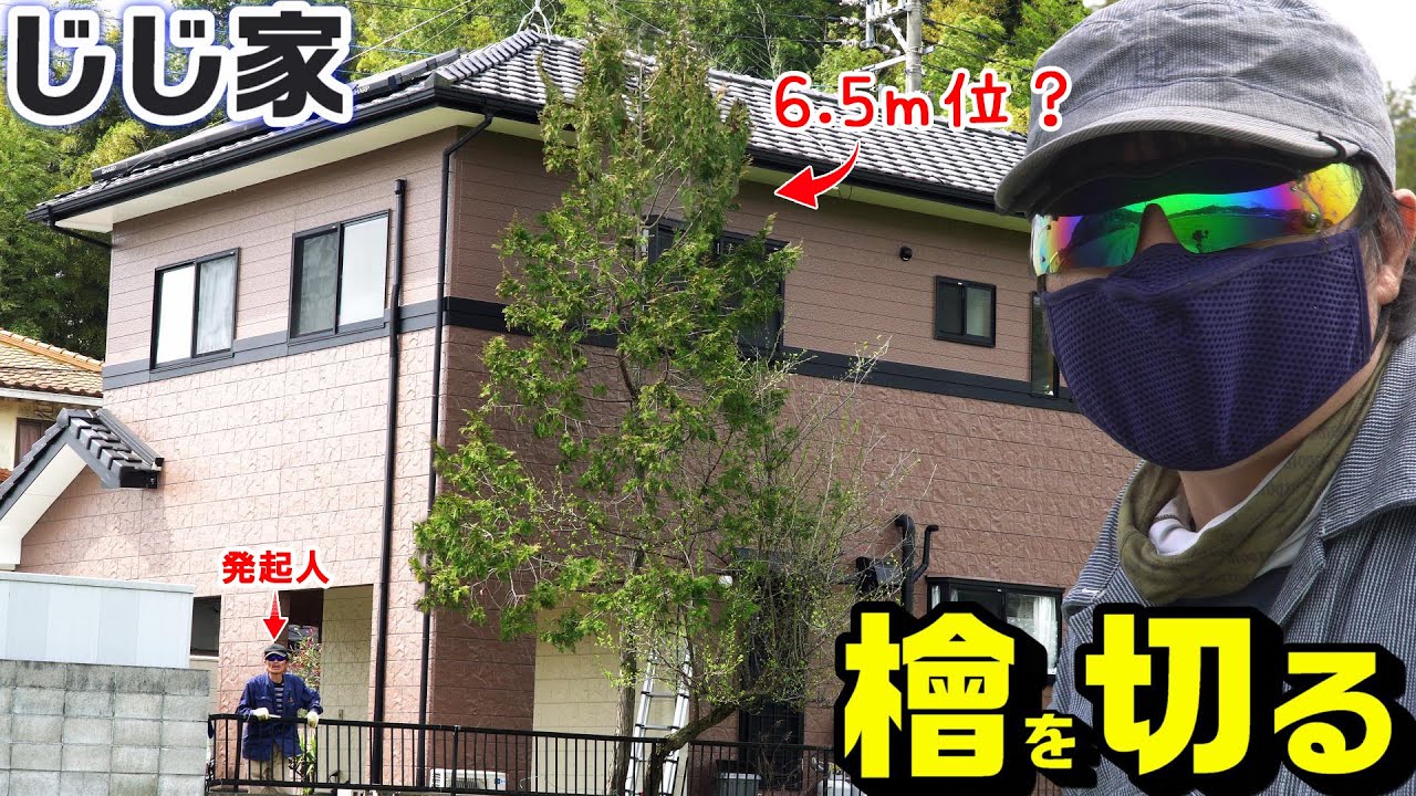 今日はじじに頼まれて今にも家を傷つけそうな檜をカットしてみました。