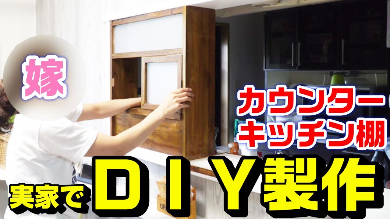 実家のカウンターキッチンなんですが今即席で造っている棚があるのですが前回造った棚の余りを利用してキッチンにも棚を造りました。