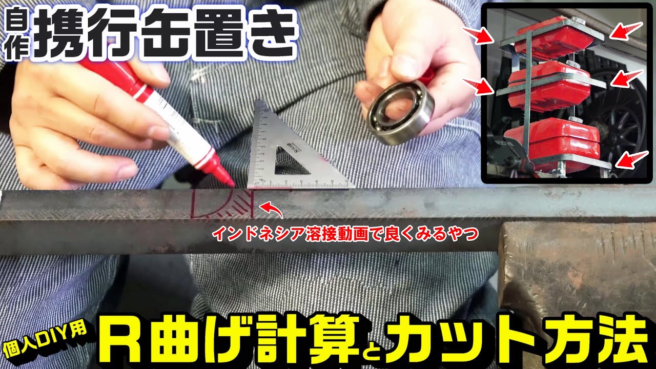 【R曲げ】角丸曲げ計算とカット方法(個人DIY用)|携行缶置き造ってみた